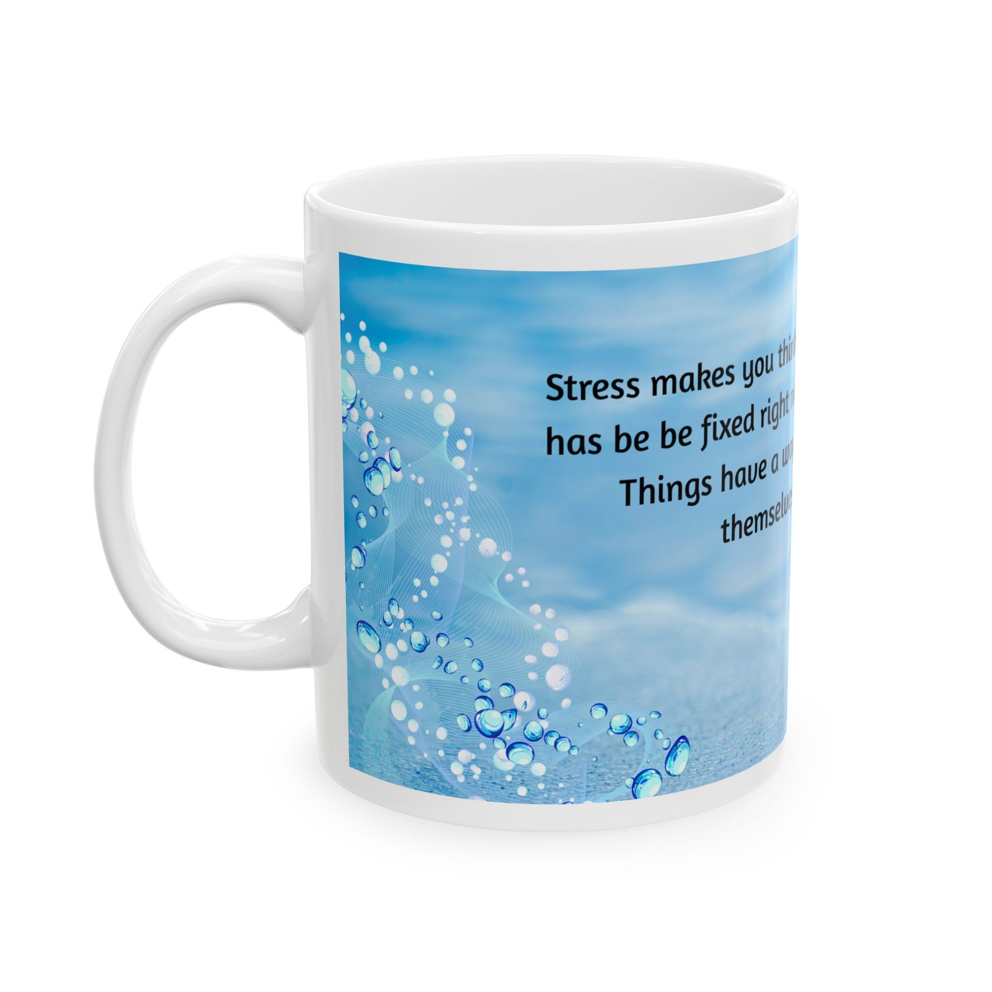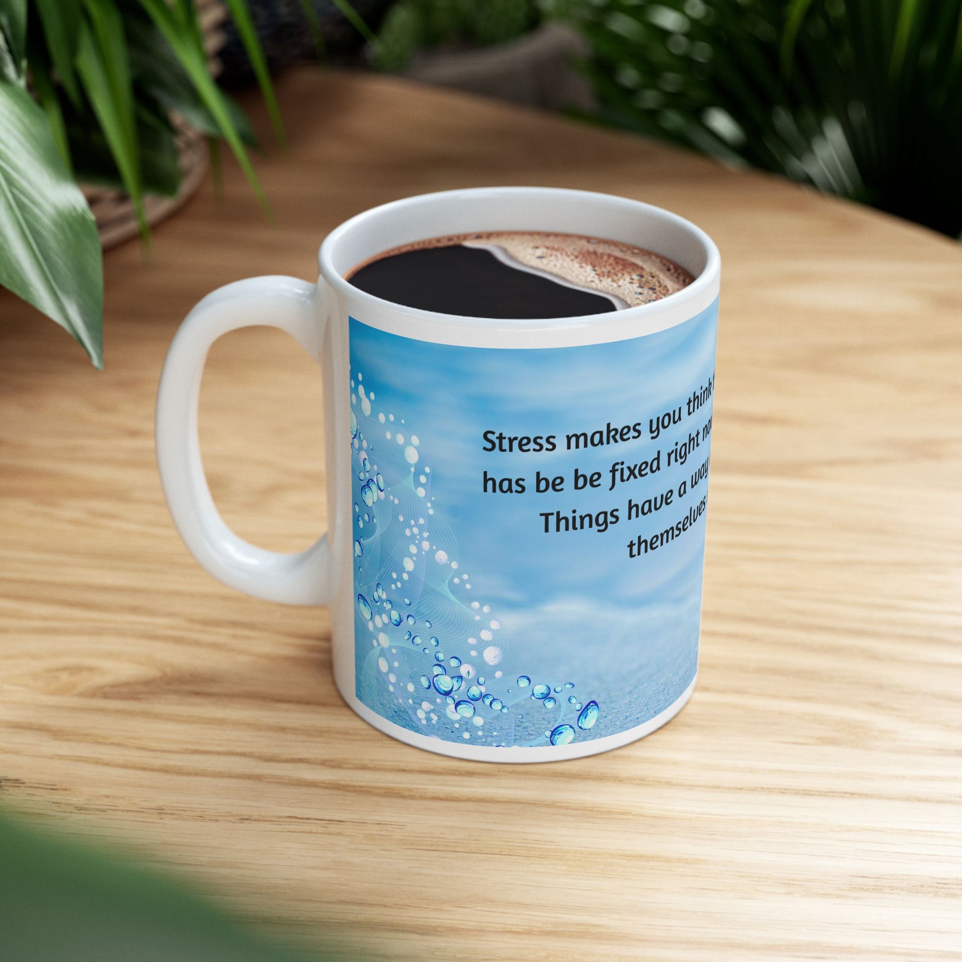 This mug knows exactly what to say when your brain is doing backflips at 7 a.m. With the gentle reminder “Stress makes you think that everything has to be fixed right now. Just breathe. Things have a way of working themselves out,” it’s basically deep breaths — in a cup.