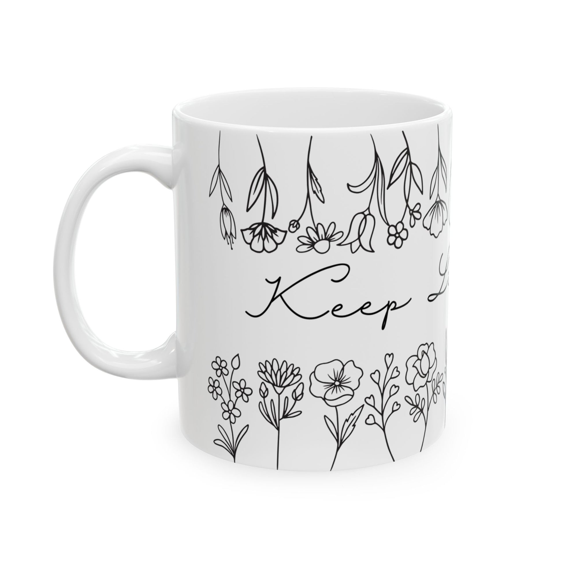 With delicate black floral borders and a crisp white finish, this mug is a quiet nod to the beauty of slowing down. Featuring the quote āKeep Life Simple,ā itās your invitation to savor small moments, clear the clutter (in your mind and your schedule), and find joy in the little thingsālike your favorite morning brew.